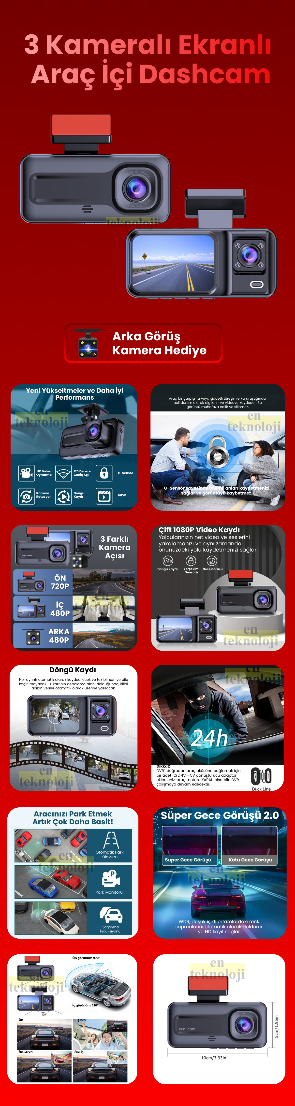 Araç İçi Hd Kamera 3 Kameralı A98 (Arka Görüş Kamerası Hediyeli)