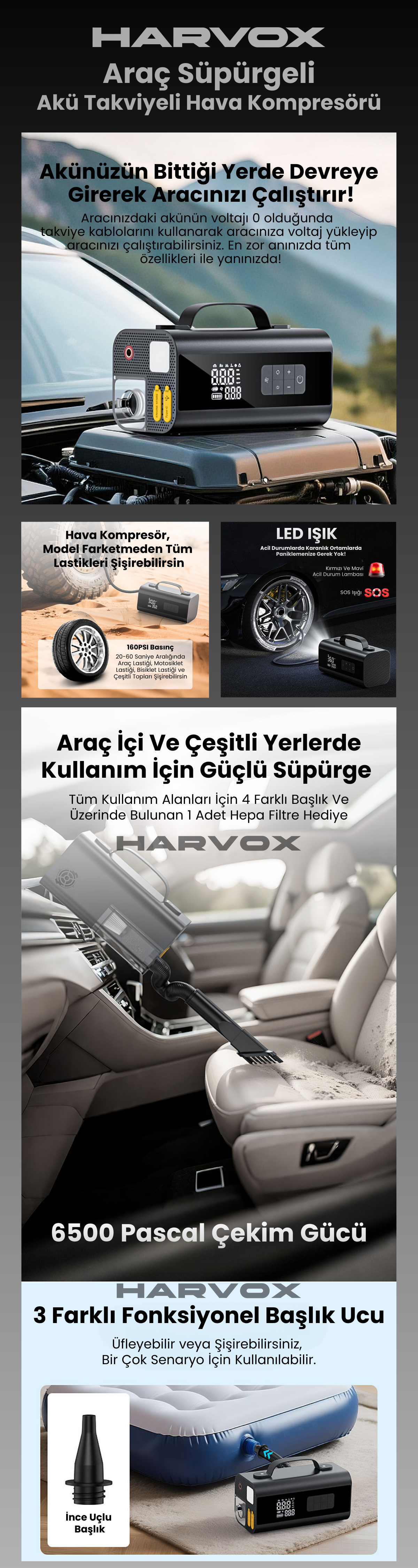 Harvox Araç Süpürgeli Akü Takviyeli Hava Kompresörü HXJS-001