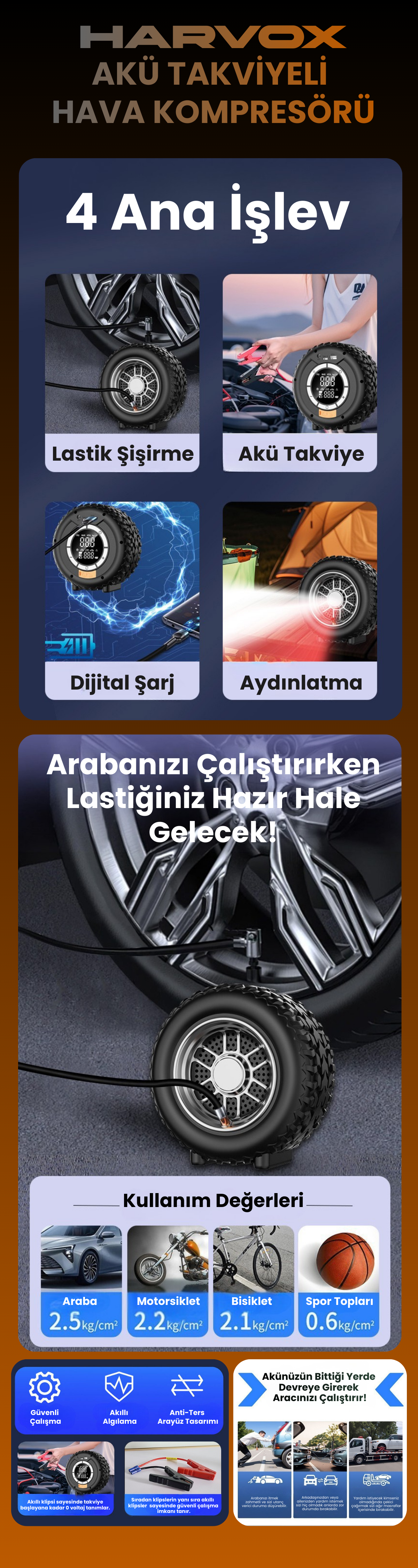 Harvox Akü Takviyeli Hava Kompresörü HXJS-003