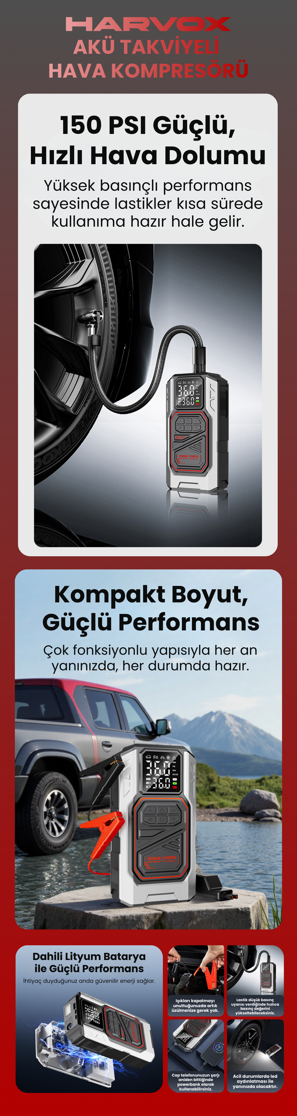 Harvox Akü Takviyeli Hava Kompresörü HXJS-004