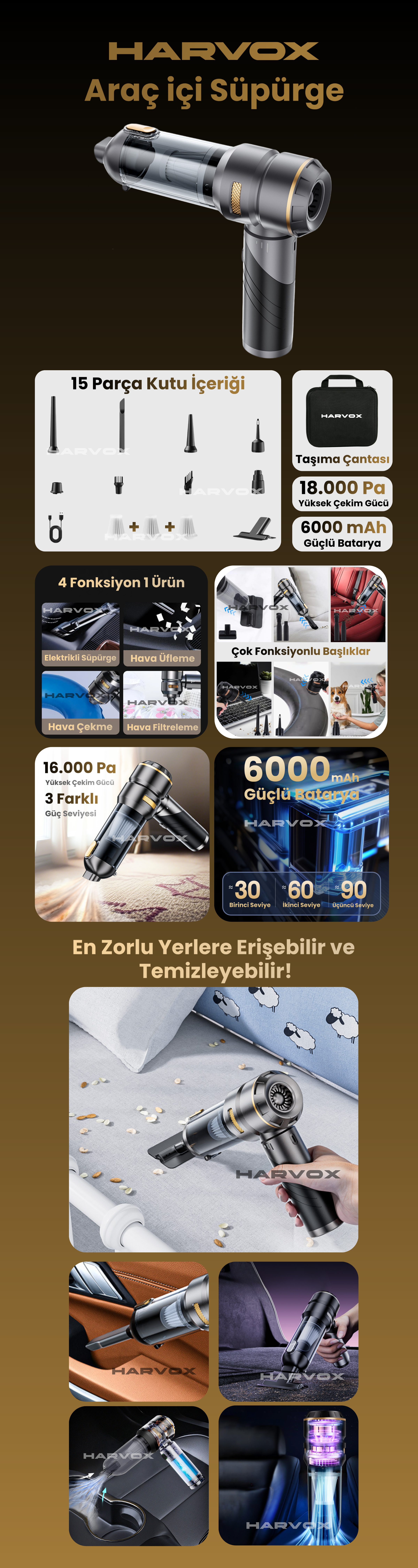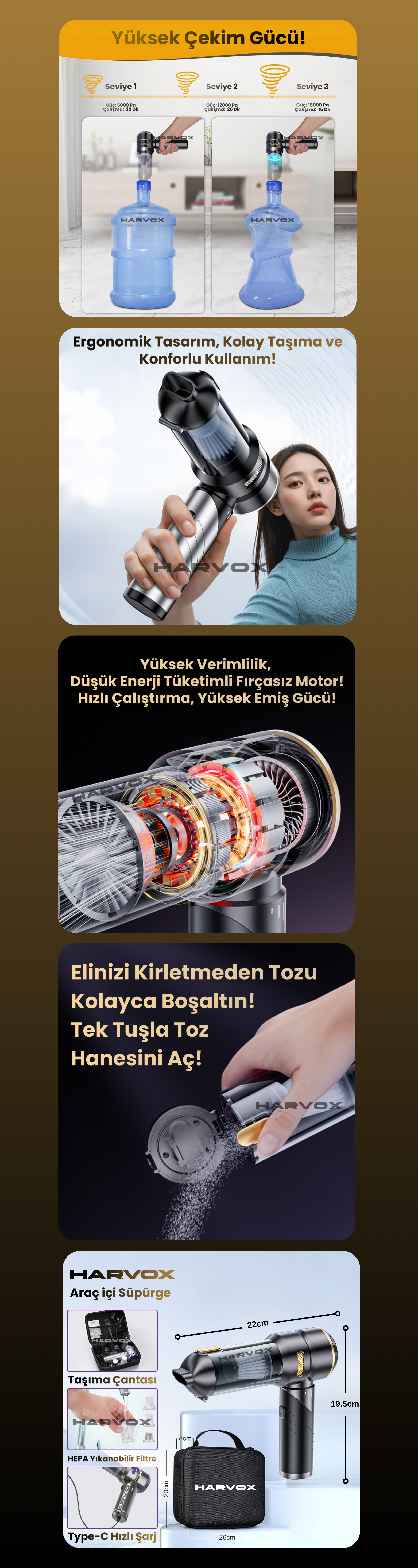 Harvox Araç İçi Süpürgesi HXVC-002 (Kahverengi - Siyah)