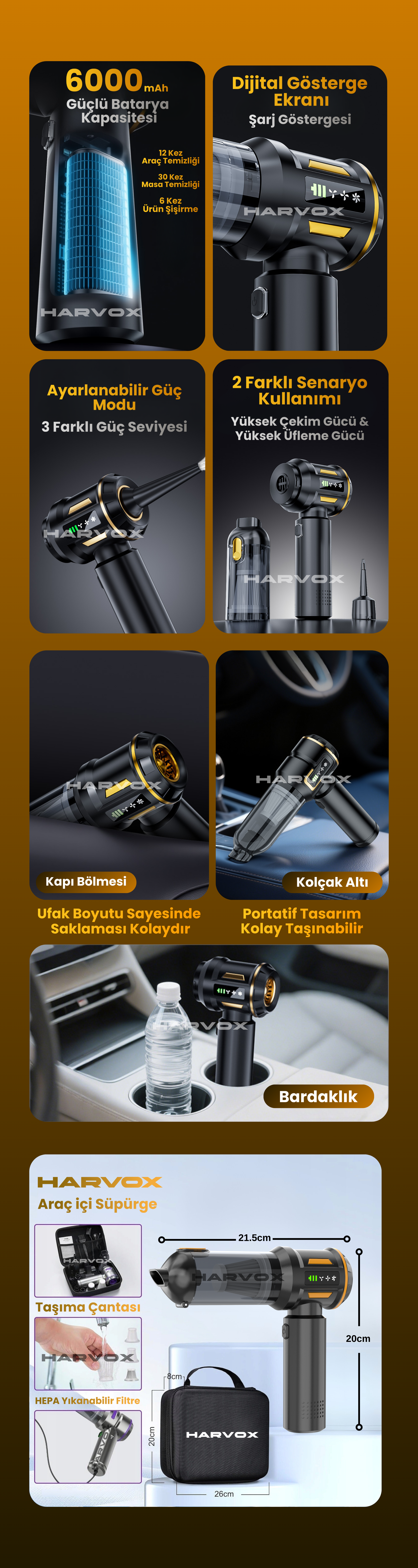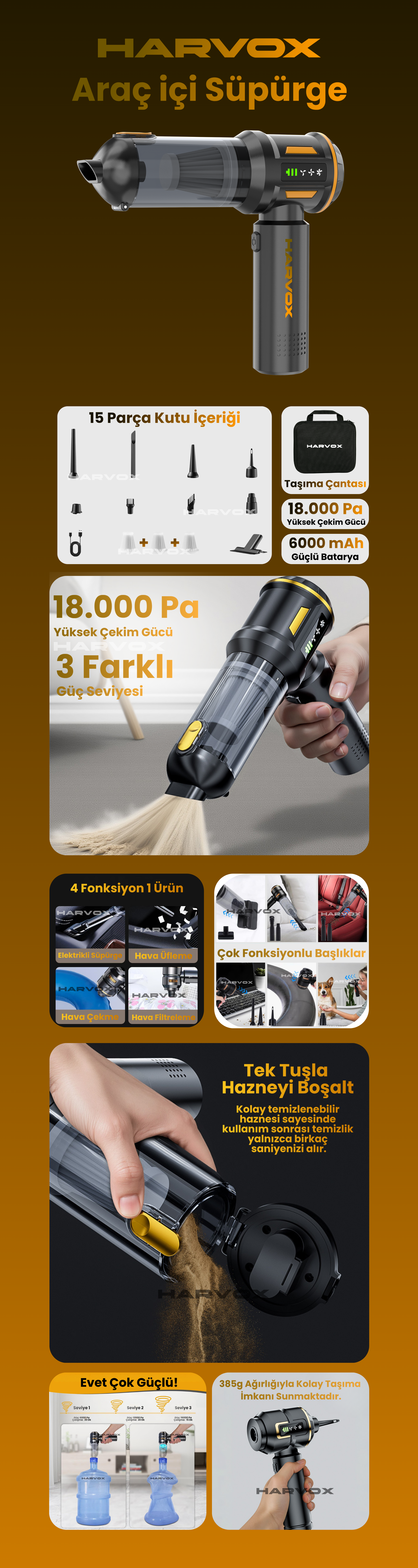 Harvox Araç İçi Süpürgesi HXVC-003 (Sarı - Siyah)