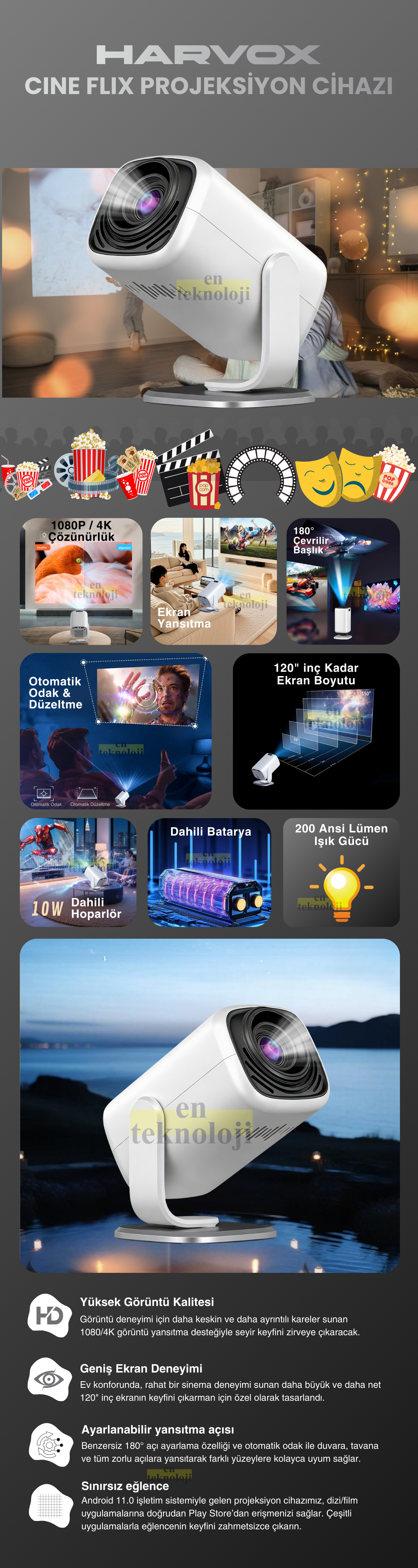 En Teknoloji ve HARVOX iş birliğiyle Cine Flix projeksiyonu keşfedin.