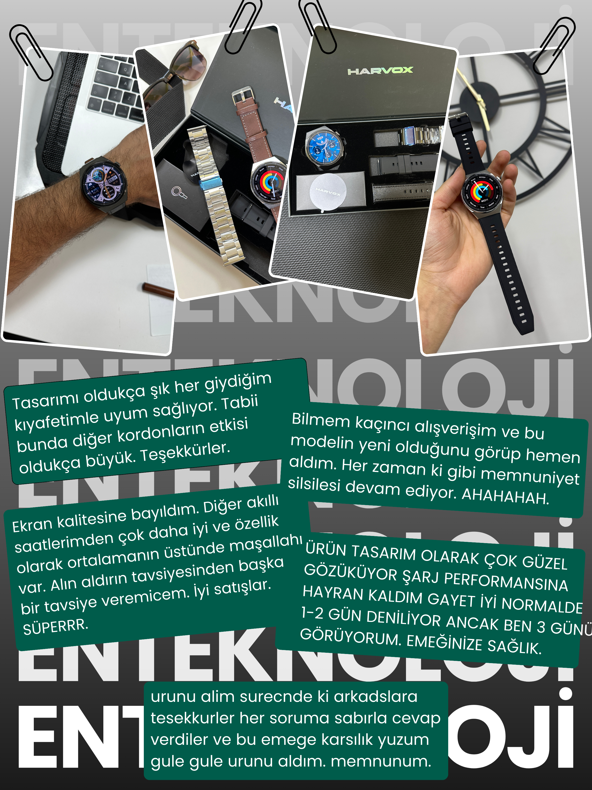 Artık analog saatten sıkılmıştım ama yine içimde o tarz saat takmak vardı. Enteknoloji sağolsun klasik model tasarlamış ve on numara yapmışlar. Özellik olarak çok çok iyi seviyede. Tasarımına laf bile söylenilmez. KOLAY GELSİN.