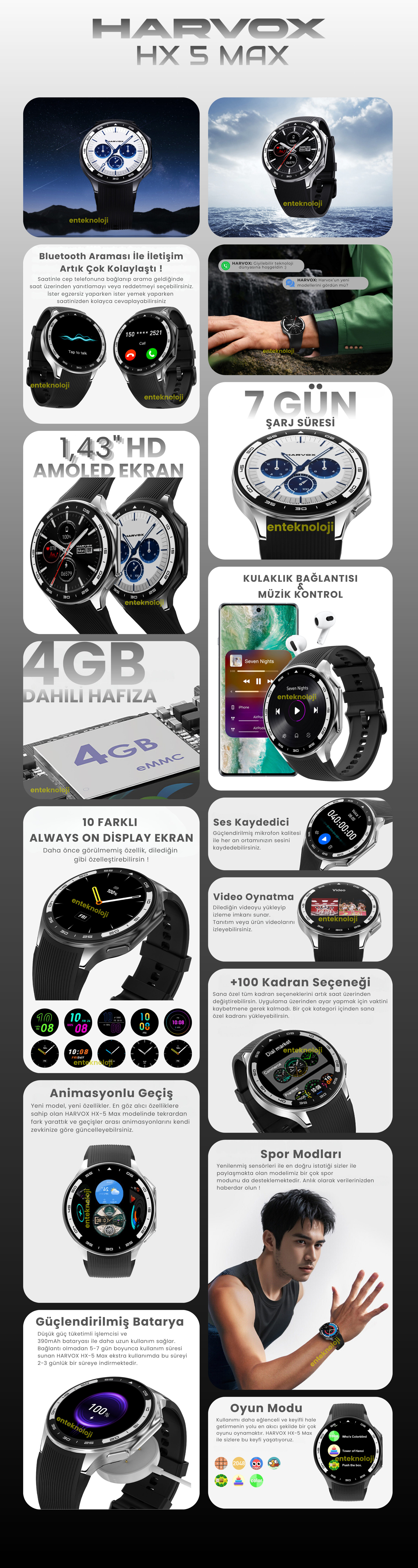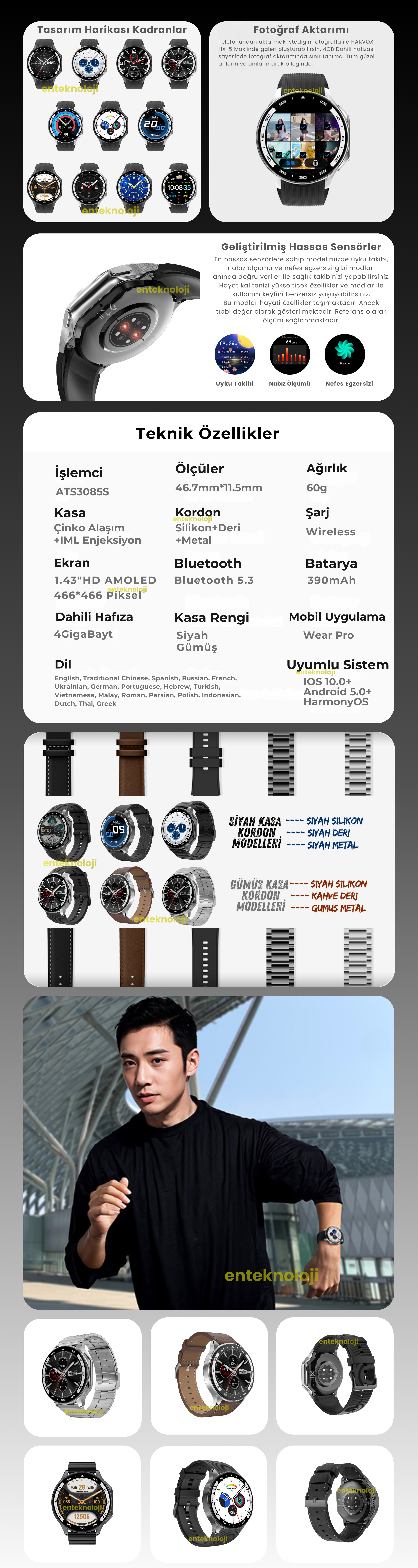 HX-5 MAX akıllı saat 466*466 piksel ekran çözünürlüğüne sahiptir.