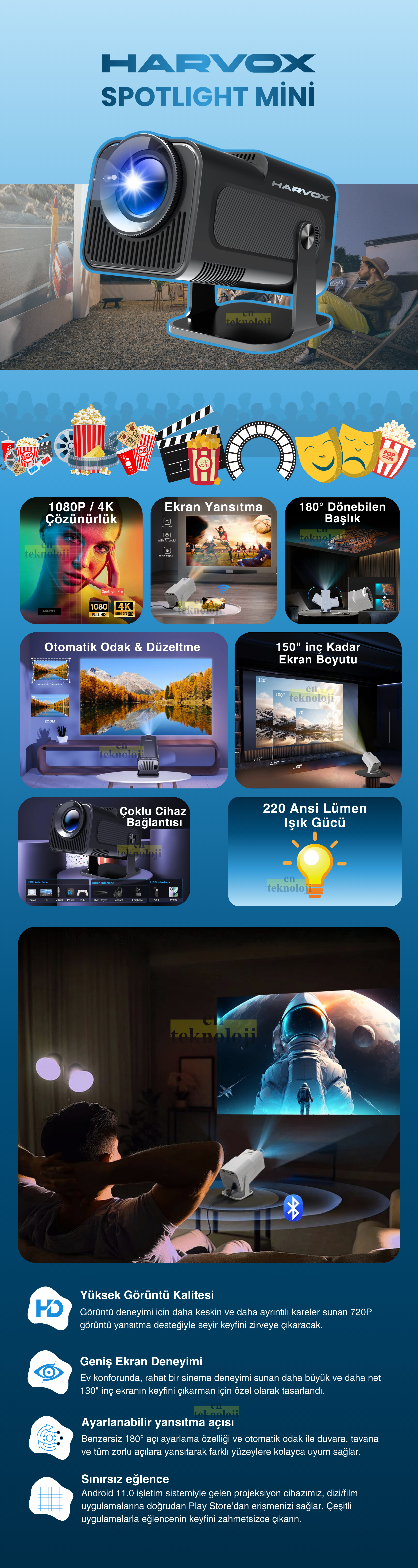 Ve işte bu kadar! Harvox Spotlight Mini'niz sıradan bir odayı sinematik bir cennete dönüştürmeye hazır.