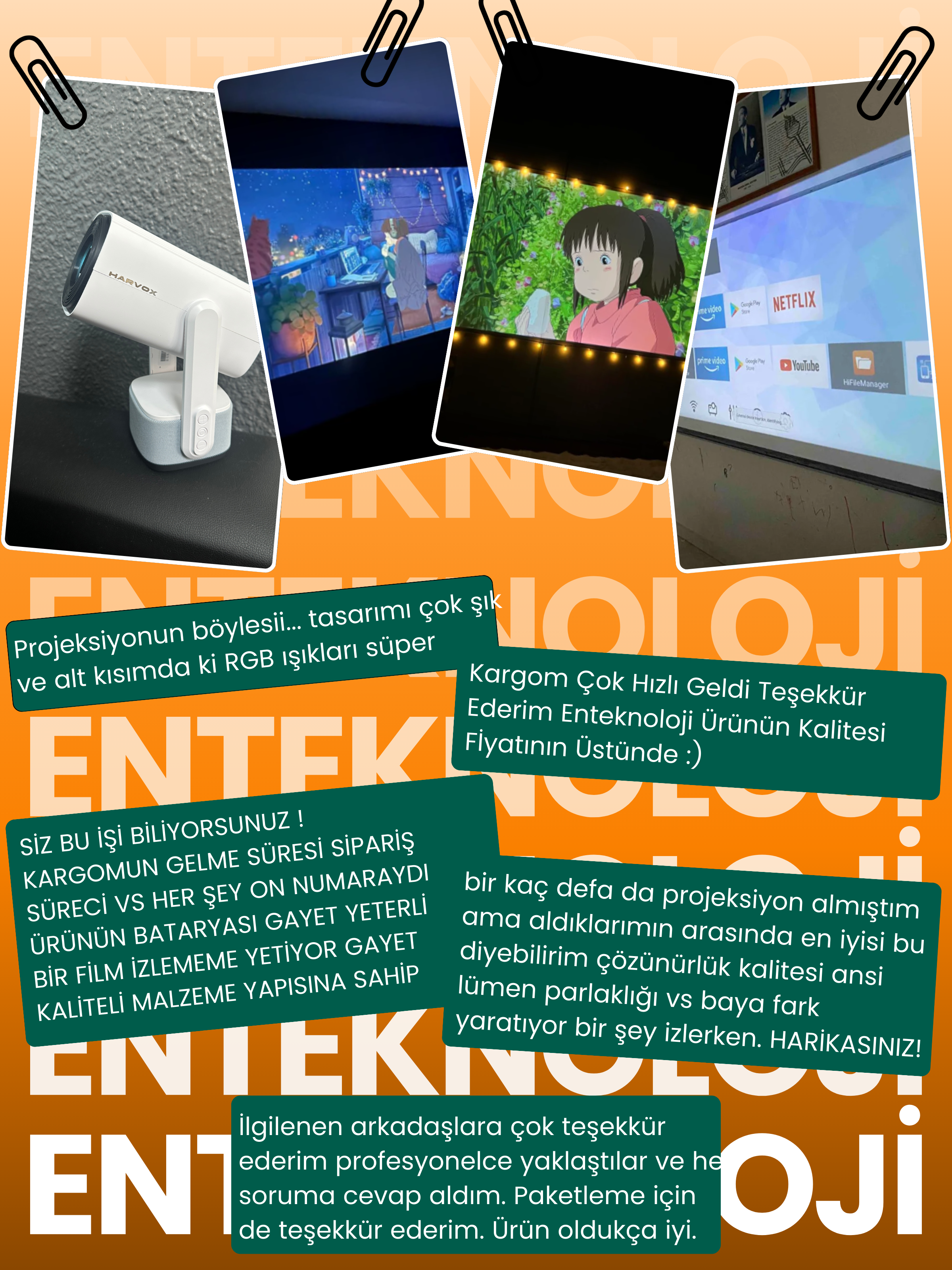 Bir çok kez projeksiyon aldım ama aldığım en iyi proeksiyon cihazı net budur görüntü kalitesi olsun batarya gücü olsun ansi lümen değeri ve hoparlörü inanılmaz fark ediyor diğer cihazlarıma göre. Satıcıyı bilmeyen yok zaten ülkede. Teşekkür ederim.