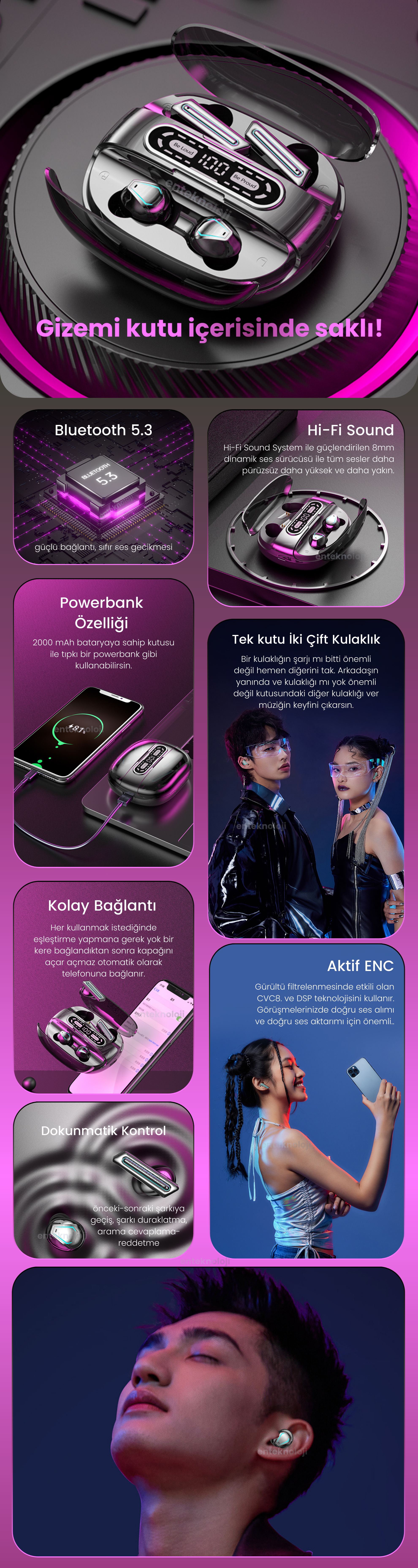 Ürünümüz, Bluetooth 5.3 teknolojine sahiptir. Bu sayede sizlere izlediğiniz içerik, dinlediğiniz şarkı ve oynadığınız oyunlarda tüm performansıyla anlık ses iletilmesini sağlar. Oyun zevkini maksimuma katlar.