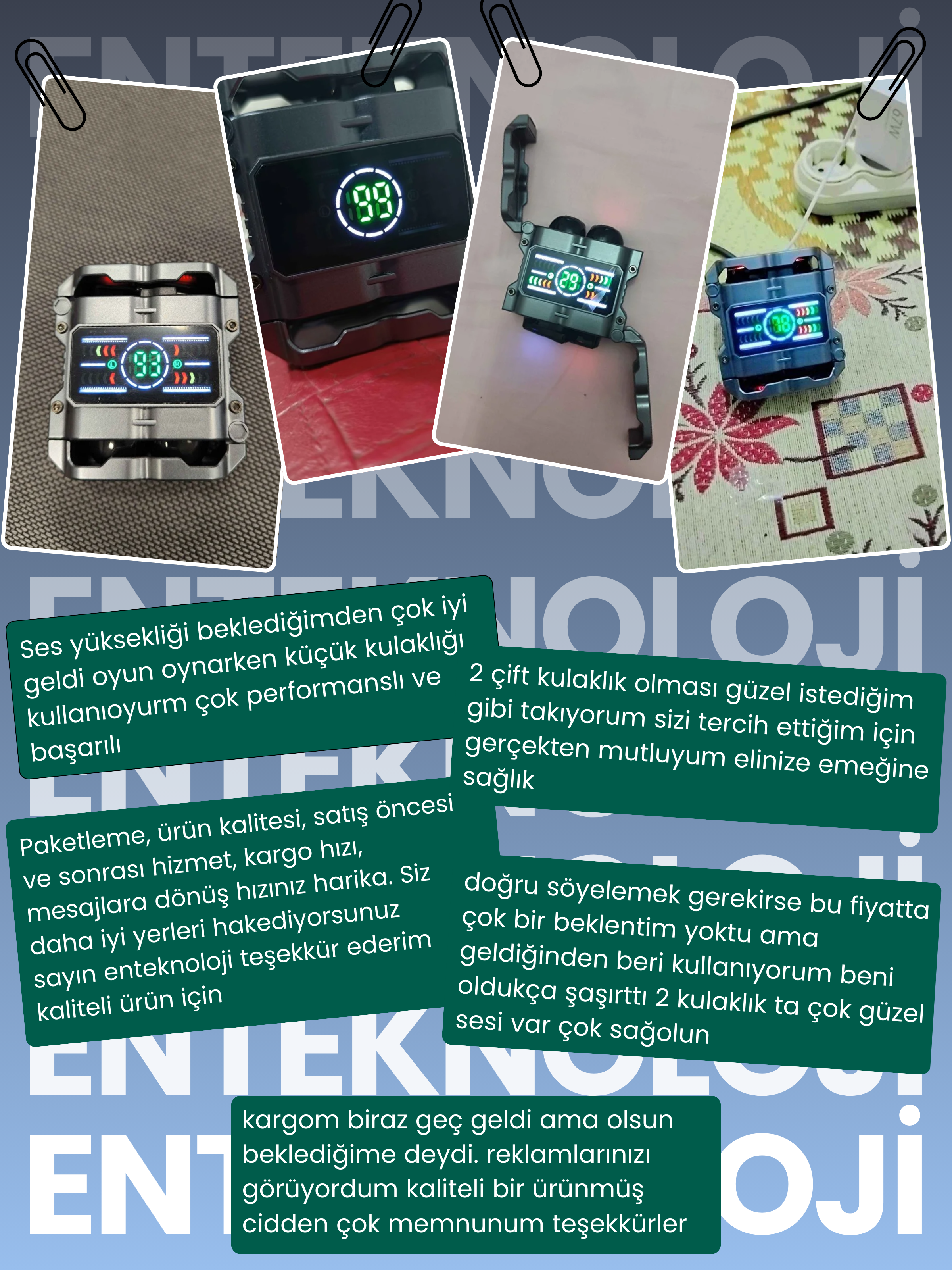 Başta ürün bozuk sandım meğer kulaklıkların şarj yerinde jelatin varmış ondan açılmıyormuş onları söktükten sonraş arj ettim ve kullanmaya başladım. Sorunsuz çalışıyor tam olarak beklediğim gibi biri bitiyor diğerine geçiyorum😂 teşekkürler enteknoloj